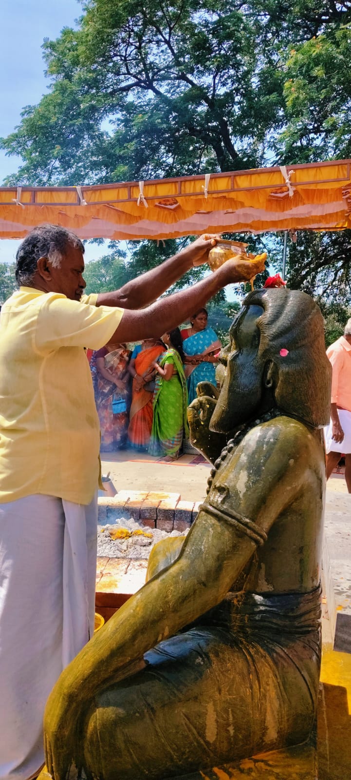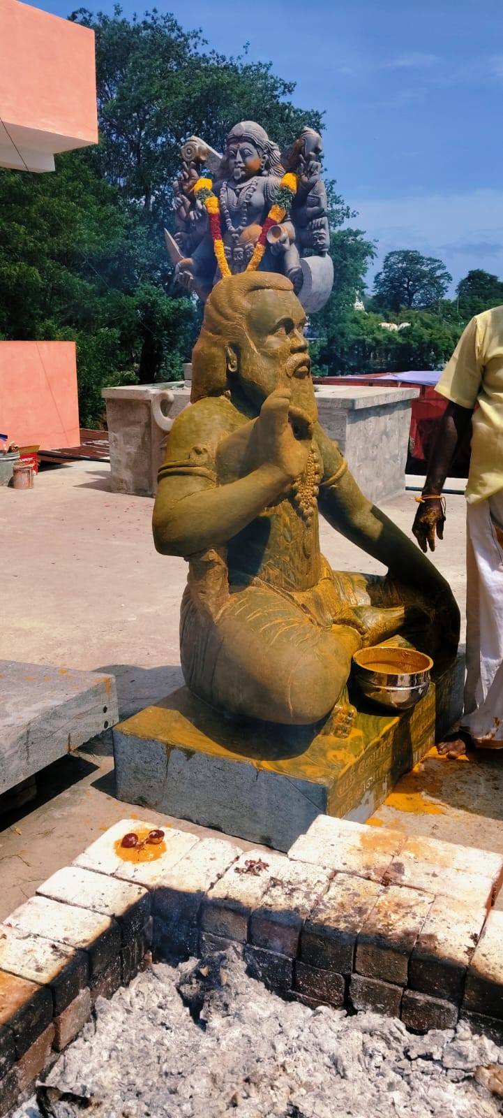 Korakkar siddhar once discussed this among the 18 Siddhars and Lord Shiva, and asked what the solution for this would be. Shiva said “If someone is willing to bear the sins committed by humans, then I will grant their wishes, purify their minds, activate their sixth sense (higher wisdom), help them live righteously, and grant them liberation (Moksha)”. To fulfill this in this world, the three Siddhars – Bogar, Pulippani, and Gorakkar – took birth in the human form and consecrated this Ashtama Siddhi Pratishtai. All three of them attained Jeevasamadhi in this. When people enter this sacred space their Karma and sins are drawn into the idol of Korakkar. The idol of Korakkar was consecrated to serve as the one who bears these sins. At the base of this statue, Siddhar Korakkar attained samadhi to remove the karma and sins from your life so that you may receive the complete grace of Lord Shiva, live well and ultimately attain Mukti – “My purpose is fulfilled by paving the way for you to attain Mukti with God”